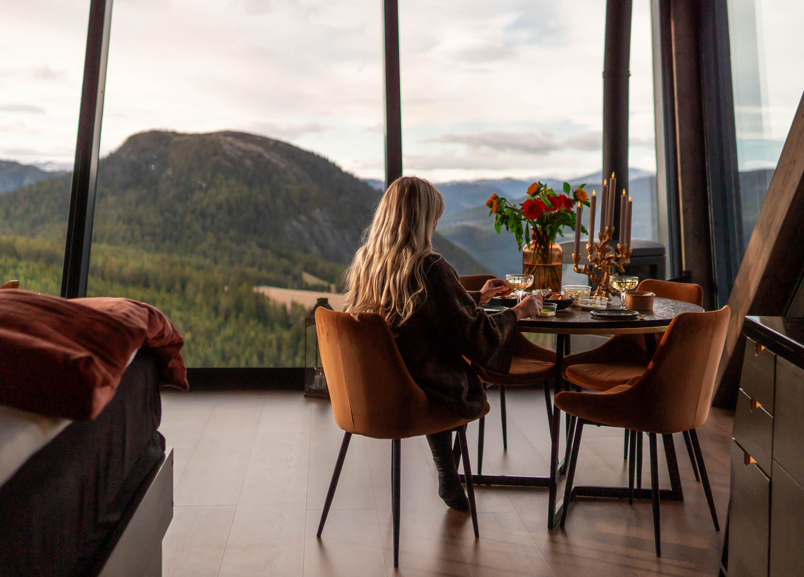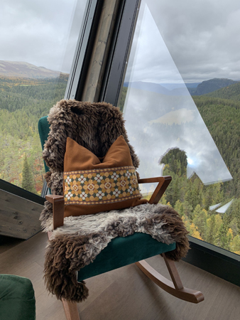 The interior in Eagle Nest Eco Lodge is built on rich crafts and cultural traditions from Gudbrandsdalen – seasoned with colours and materials from the mountains surrounding us.