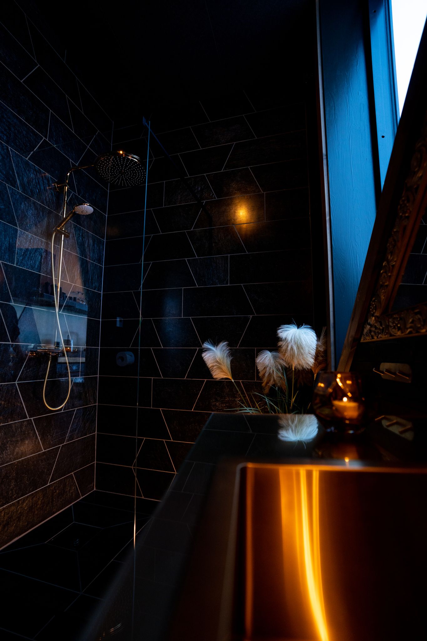 Fra den lekre badestampen og de nydelige fluktstolene på utsiktsterrassen. I sofaen eller den herlige himmelsenga inne i lodgen.